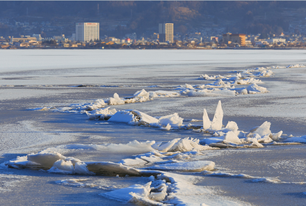 - “Miwatari” refers to a natural ice ridge that forms when the entire surface of Lake Suwa freezes.