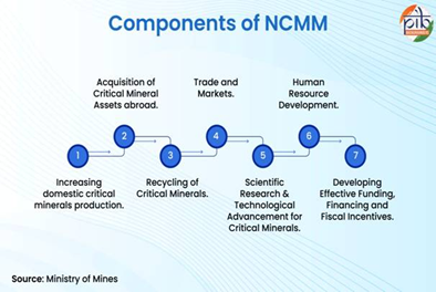 - National Critical Mineral Mission (NCMM) – It aims to strengthen the value chain from exploration to recovery.